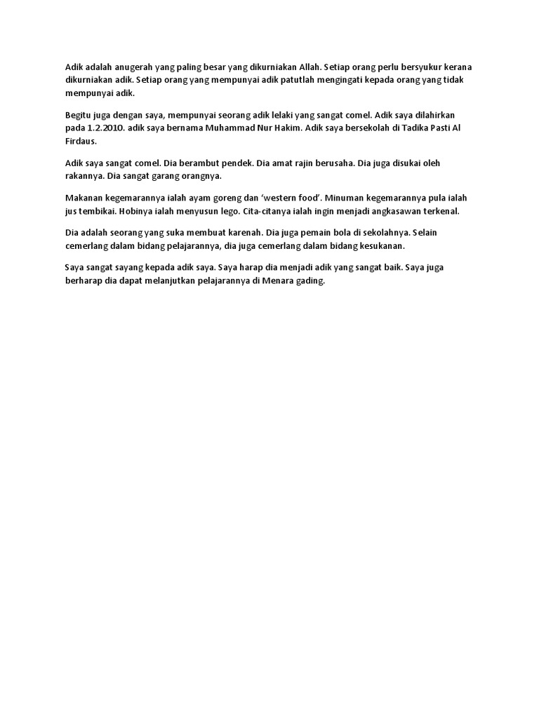 Contoh Karangan Upsr Adik Saya